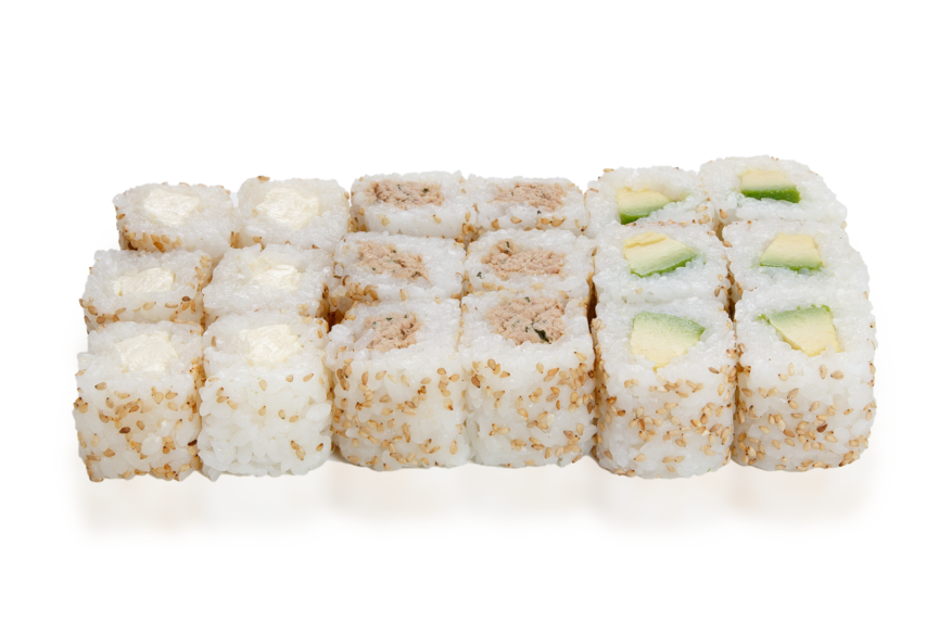 – 6 Rice roll Avocat (servis avec soupe miso, salade choux)